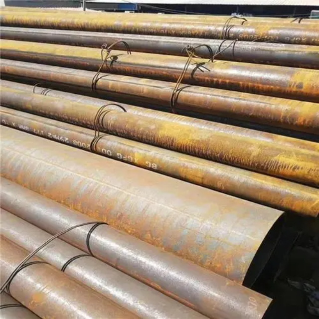 马鞍山gb3087无缝钢管要用钢锭或实芯管料经破孔制成毛管,随后经热扎、冷轧或冷拨制成。马鞍山gb3087无缝钢管在中国钢管业中具备重要的位置。据不完全统计,我国目前无缝管生产公司约240多家,无缝管机组约250多套,年产能力约450多万吨。从规格看,马鞍山gb3087无缝钢管的原料是圆管坯,圆管胚要经过切割机的切割制作成长短约为1米胚料,并经输送带送至溶炉内加温。钢坯被送进溶炉内加温,温度约为1200℃。燃料为氢气或乙炔。炉内温控是关键性的难题.圆管坯出炉后要经过压力穿孔机开展穿空。一般较常见的穿孔机是锥形辊穿孔机,这类穿孔机生产效率高,产品品质好,破孔扩径量多,可穿多种钢种。破孔后,圆管坯就先后被三辊斜轧、连轧或挤压。挤压后应脱管定径。定径机根据锥形钻头高速运转入钢胚打孔,产生钢管。钢管内径由定径机钻头的直径长短来决定。钢管经定径后,进入冷却塔中,根据喷水冷却,钢管经冷后,就要被校直。钢管经校直后由输送带送往金属探伤机(或压力试验)进行内部探伤。若钢管内部有裂痕,气泡等问题,将被检测出。钢管质检后还要通过严格手工选择。钢管质检后,用漆料喷上编号、规格、生产日期等。并由吊车吊入仓库里。